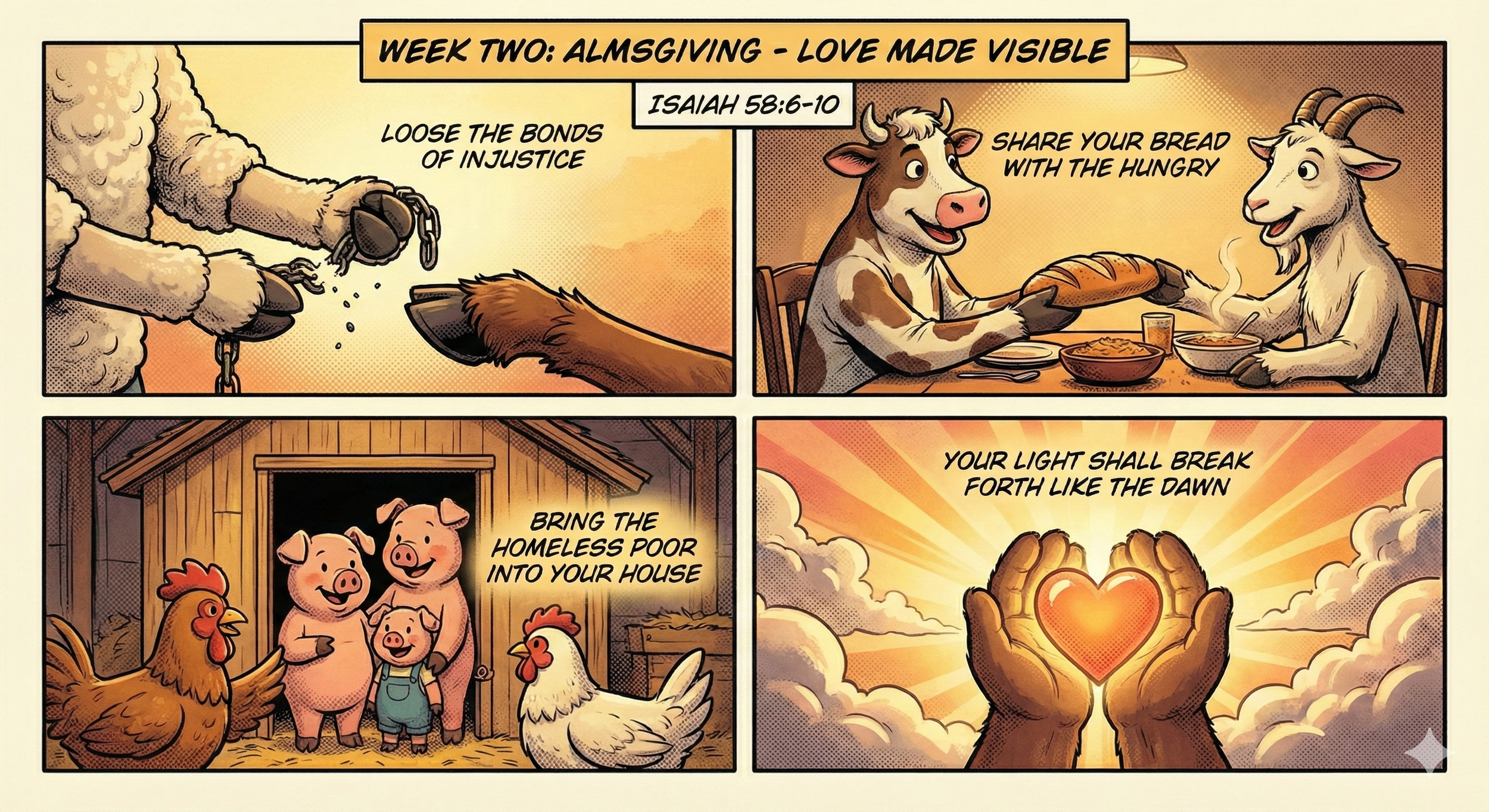 Almsgiving is more than giving money—it is the practice of seeing others with compassion and responding with love. Isaiah reminds us that God's heart turns toward the burdened, hungry, and overlooked.